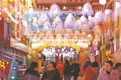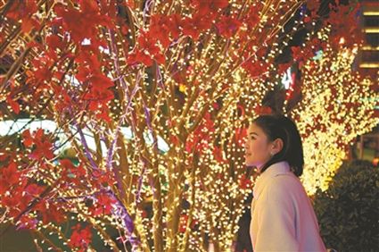 火樹銀花不夜天,流光溢彩呈繽紛?!敖衲甑囊咕罢嫫涟。 蓖钒⒁毯偷窃鍪迨逋盹埡髱е鴮O女來到將軍橋散步,在自己的家鄉(xiāng)欣賞到如此美妙的景色,登增叔叔忍不住夸贊。此時(shí),將軍橋道路兩旁的綠化帶在彩燈的映襯下輪廓畢現(xiàn),與玻璃棧道上的光影交相輝映,城市美景盡在其中。