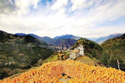 而中路藏寨則在云霧繚繞中浪漫四溢,目光所及之處皆是晾曬的豐收?qǐng)鼍埃r紅的辣椒與黃澄澄的玉米相互拼錯(cuò),勾勒成一幅絕美的田園牧歌畫卷,來到這里,有種穿越世外桃源之感,高聳的碉樓,古樸的藏寨,加上遠(yuǎn)山云霧的襯托,宛若人間仙境。