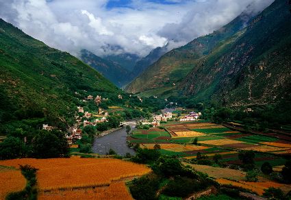丹巴藏寨是嘉絨藏寨中最具特色的。尤以甲居、聶呷、革什扎和巴底鄉(xiāng)最為突出,冰川雪線之下,村落散布,一幢幢民居依山就勢(shì)、錯(cuò)落有致地融于自然環(huán)境中,體現(xiàn)了天人合一的理念。遠(yuǎn)遠(yuǎn)看去,充滿靈氣的山谷中,翡翠般的青草綠樹(shù)之中,是那沉甸甸的田地和隱在密林深處的寨房,伴著潺潺溪流,一幅富有動(dòng)感的絕妙山寨畫(huà)卷隨之展示在你的眼前。