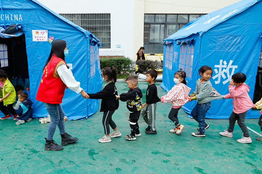 在社會各界搶險救援隊伍的鼎力支援下,災區(qū)的道路、電力、通信等逐漸恢復,生活逐步走上正軌;在愛心志愿者的安撫關(guān)心下,孩子們走進“帳篷課堂”,朗朗書聲、歡快笑聲日漸增多。