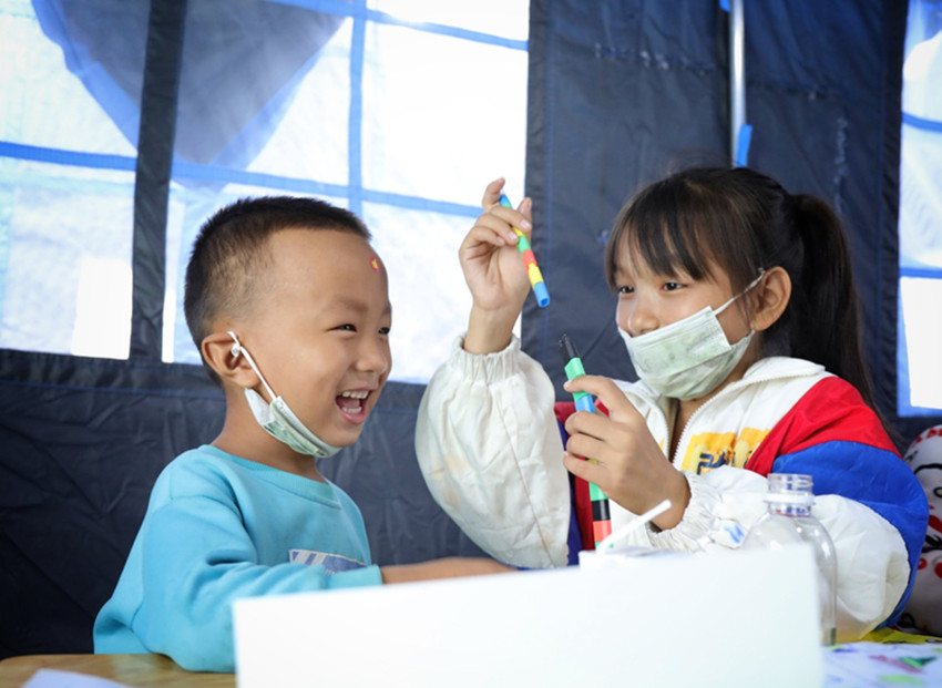 當前,雖然余震還時有發(fā)生。但在災區(qū)的各安置點,在臨時搭起的帳篷里,隨處可見孩子們天真的笑臉。突如其來的災難給他們的家園留下了印記,但不能阻擋笑容在他們臉上綻放。有孩子,有笑容,就有希望,就有美好的明天。