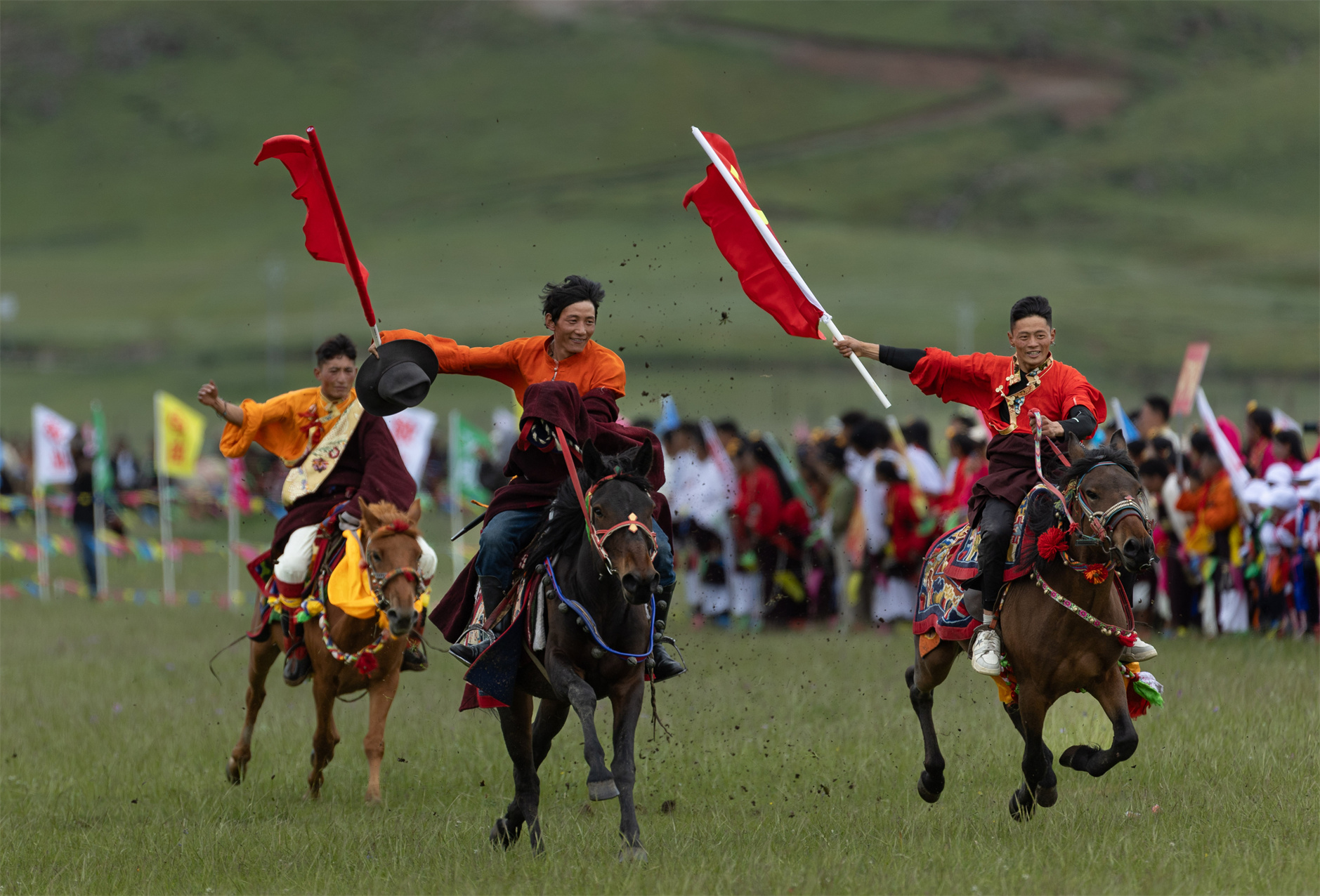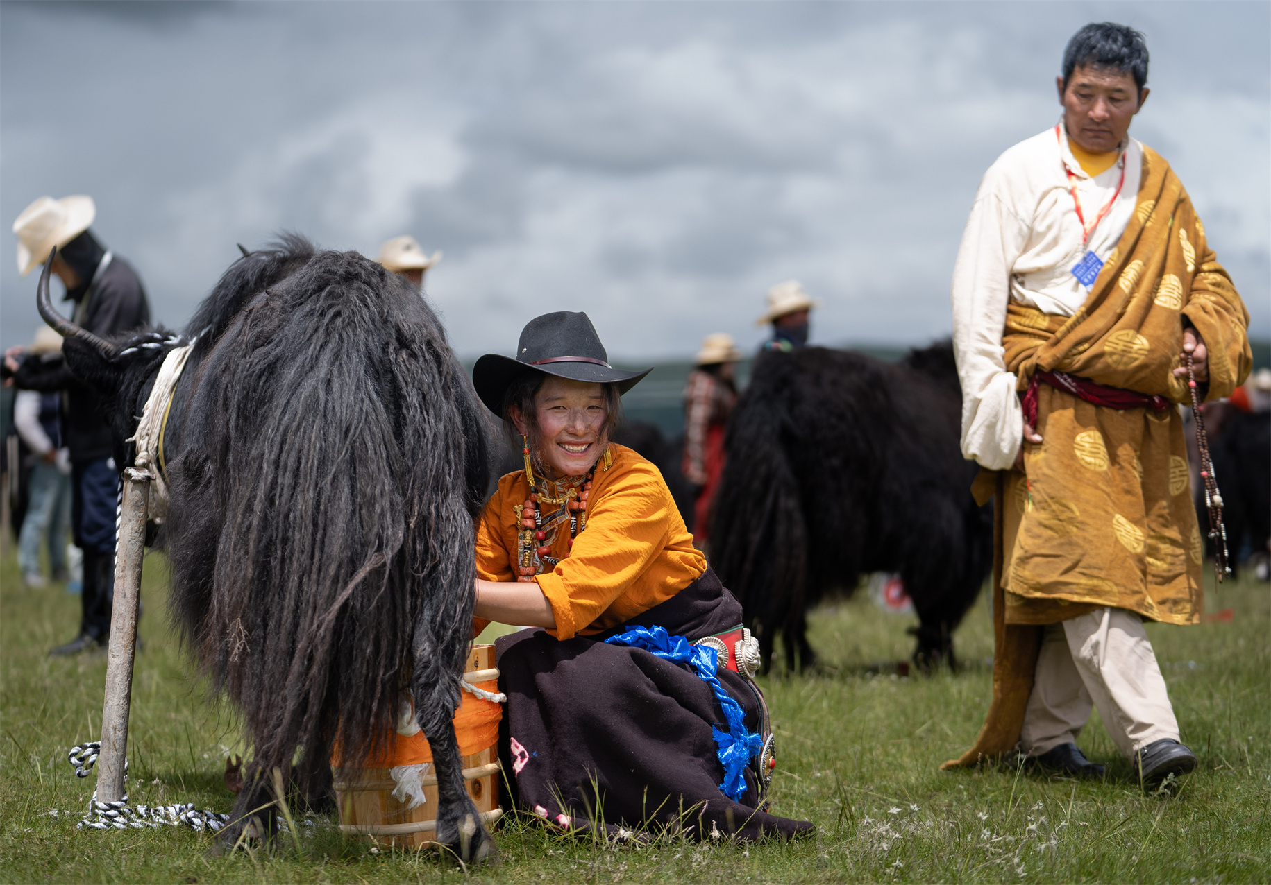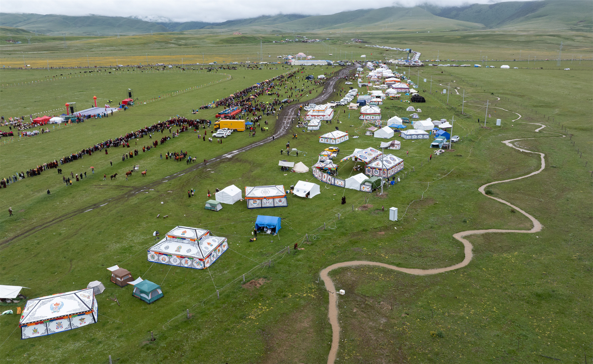 7月27日,四川省甘孜藏族自治州白玉縣第二屆“盛德白玉·草原最?!编l(xiāng)村民俗文化活動在阿察鎮(zhèn)日通草原啟幕。文藝匯演、牦牛選美、擠奶比賽、賽馬等活動在接下來兩天里將輪番上演,吸引當?shù)啬撩窈捅姸嘤慰颓皝碛^賞。