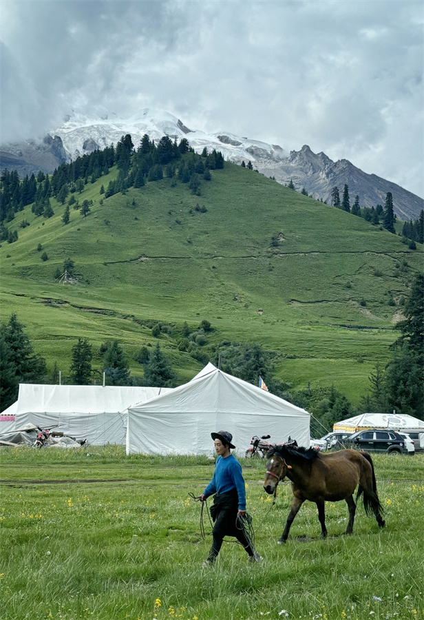 不管然日卡村還是則巴村,村民的勤勞善良也一樣讓人印象深刻。然日卡村的藏族姑娘丁真拉珍剛過18歲,卻經(jīng)常像個將軍去山上放牧和指揮100多頭牦牛,如果時間允許,她還去挖蟲草和松茸,但同時又在村里當旅游向?qū)ВT上摩托、牽上馬匹帶游客四處參觀,每天忙得不亦樂乎;同樣是然日卡村的小伙澤仁剛?cè)⒘宋棠饭媚铮麄儚膫鹘y(tǒng)的放牧中抽身出來,與村里許多年輕人一樣,一心一意打造鄉(xiāng)村民宿,用勤勞的雙手走上了一條嶄新的致富路;而則巴村的帥小伙甲他,今年也在村子里建起了屬于他們一家的“奔然甲他”民宿,奔然是村前一座小山的名字,甲他相信他們的日子一定如山一般堅實越過越好。