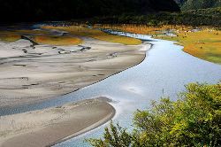 康東地區(qū)海拔最低的海子。澄碧的湖水與雪山融為一體,海子中細(xì)紗沉積,形成色彩斑斕的河床,令人仿佛置身海濱。海子中還有“湖中長樹,樹會(huì)走路”、“石頭說話”、“半壁穴居”等神奇景觀。