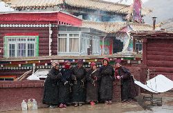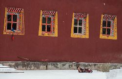 冬季的色達,常常被皚皚白雪覆蓋,民居、帳篷、寺院、經(jīng)幡、牦牛點綴期間,美麗迷人。