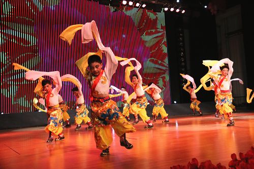 在歡快的音樂聲中,《師恩如歌》拉開了“園丁頌”文藝晚會(huì)的序幕。悠揚(yáng)的歌聲,歡快的舞蹈,熱烈的掌聲,演繹著同一個(gè)主旋律:“老師,是您為我們開啟了智慧的大門,加減乘除,算不盡您做出的貢獻(xiàn)!詩詞歌賦,頌不完對(duì)您的感激!千言萬語只能匯成一句話:老師,您辛苦了,我們永遠(yuǎn)感謝您!”晚會(huì)以“園丁頌”為主題,分為“播種希望”、“愛的光芒”、“九月禮贊”三個(gè)篇章。歌曲《圓夢(mèng)中國》、情景劇《守望白云》、舞蹈《老師親,媽媽親》等13個(gè)節(jié)目先后上演。一首首膾炙人口的歌曲,唱出了對(duì)人民教師的無限深情,一個(gè)個(gè)激情昂揚(yáng)的舞蹈,道出了對(duì)人民教師的萬般感激。旋律優(yōu)美、歡快熱烈、精彩紛呈的晚會(huì)深深地吸引了現(xiàn)場(chǎng)觀眾的眼球。一聲聲發(fā)自內(nèi)心的問候,一句句來自心靈的祝福,將晚會(huì)一次次推向高潮,晚會(huì)現(xiàn)場(chǎng)掌聲雷動(dòng)、歡呼雀躍,《吉祥祝?!犯栉璞硌轂檎_(tái)晚會(huì)畫上了一個(gè)圓滿的句號(hào)。
