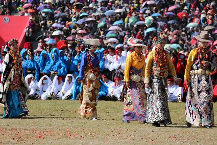 于是,年復(fù)一年,“漢子”與“花”兒們便挺拔、綻放在漢語表達(dá)的一個(gè)極點(diǎn)之上,被玄想,被渴望。對遠(yuǎn)道而來的人們或是世代居于高原的子民而言,康巴漢子與康巴之花不僅僅是美的化身,通過康巴漢子與康巴之花的評比,人們在尋找一個(gè)早已失落卻又天然渾成的世界。