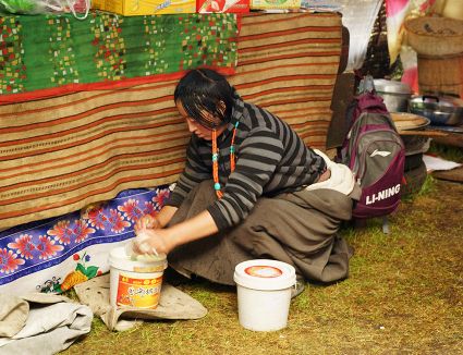 達(dá)珍和她的丈夫是我州爐霍縣宗塔草原上普通的牧民,育有一對(duì)兒女,都在縣上讀書,小兒子上小學(xué),大女兒讀初中,放暑假,11歲的女兒回到了牧場(chǎng),幫助阿爸、阿媽放牧。女兒的到來(lái),讓達(dá)珍家每一天都充滿了歡笑,7月中旬的一天,筆者來(lái)到了這里,用像機(jī)記錄了達(dá)珍的一個(gè)早晨,那是一個(gè)朝霞滿天的開始?!?郭昌平 攝影報(bào)道