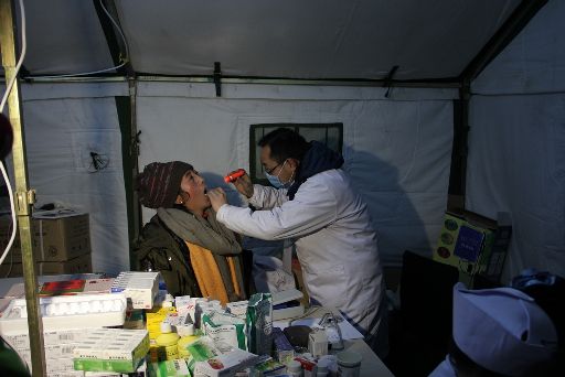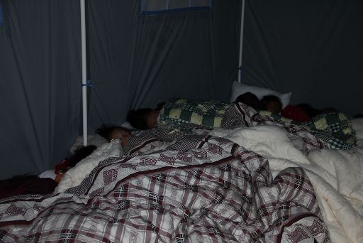 處于震中的塔公鄉(xiāng)祖慶小學(xué)在康定6.3級(jí)地震中受損嚴(yán)重,學(xué)校師生搬進(jìn)了救災(zāi)帳篷。地震后,校長(zhǎng)德吉擁忠一直忙于安頓孩子們,自己病了也沒時(shí)間去衛(wèi)生所,導(dǎo)致眼圈紅腫,聲音嘶啞。23日晚十一時(shí),帶病校長(zhǎng)拿著一支不太亮的手電到孩子們的帳篷去查夜。記者用鏡頭記錄下這一過(guò)程。