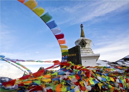 回首山隘處,白塔矗立,彩幡獵獵起舞。一聲破霧的汽笛嗚叫隨風(fēng)而至,喚起了大山深藏的靈動,奢侈的想象便從歲月的岸頭涌向洞開的現(xiàn)實。千年蒼桑古道遺棄于草荒,驚起的褐鷹盤旋于半空不知所措。誰說大山無語?霎間,云奔日耀,眩目的光瀑中流動的畫頁迎面涌來,層出不窮。