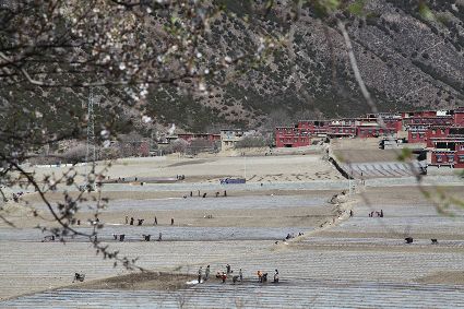 四月的康南大地,處處花紅柳綠、綠意盎然。在巴塘縣,一棟棟紅色的藏房掩映在青山綠水間,勤勞的人們正在忙著播種,一壟壟覆蓋著薄膜的土地,成了這個季節(jié)最美的畫卷。在得榮縣因都壩,田野被染成了讓人心醉的黃色,葡萄又吐出了新綠。一場春雪悄然而至,將太陽谷的大山變成了白色。在鄉(xiāng)城,大地已經(jīng)開始變得熾熱起來,遠(yuǎn)處的白藏房成了陽光下的最美風(fēng)景。