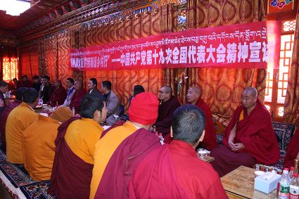 11月16日,州委群眾宣講團(tuán)第五組繼續(xù)在雅江縣開展黨的十九大精神宣講。宣講組一行分別前往雅江縣西俄洛鎮(zhèn)、紅龍鎮(zhèn)、郭沙寺等地開展宣講,當(dāng)天共開展了4場宣講,覆蓋黨員干部、群眾、僧人1083人。
