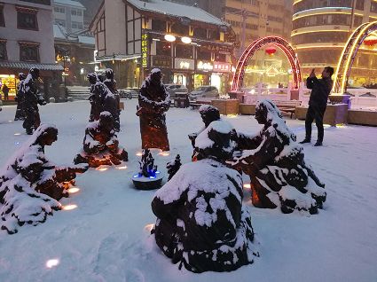 “風(fēng)雨送春歸,飛雪迎春到。已是懸崖百丈冰,猶有花枝俏?!?月4日傍晚,大片大片的雪花,從昏暗的天空中紛紛揚(yáng)揚(yáng)飄落下來。霎時(shí)間,山川、河流、城市,全都籠罩在白蒙蒙的大雪之中。黃昏的雪,下得深切切的,好象有千絲萬縷的情緒似的,又像海水一般洶涌,能夠淹沒一切,還有一絲揭開藏頭露尾般的裸露感。雪花形態(tài)萬千、晶瑩透亮,好象出征的戰(zhàn)士,披著銀色的盔甲,又像是一片片白色的戰(zhàn)帆在遠(yuǎn)航…… 落光了葉子的柳樹上,掛滿了毛茸茸、亮晶晶的銀條兒;冬夏常青的松樹和柏樹,堆滿了蓬松松、沉甸甸的雪球。那一片雪花在空中舞動(dòng)著各種姿勢(shì),或飛翔,或盤旋,或直直地快速墜落,鋪落在地上?!昂鋈缫灰勾猴L(fēng)來,千樹萬樹梨花開”——這是雪的燦爛;一場(chǎng)瑞雪,扮美了康定,年味籠罩的康定城,嫵媚妖嬈。無論是背水姑娘、有著年味兒的將軍橋,還是大紅燈籠高高掛的康定門,都在雪后別有一番景致。與美景合影、和朋友玩雪都是最佳選擇。在風(fēng)雪中,交警不畏嚴(yán)寒默默堅(jiān)守崗位 ,指揮交通疏堵保暢。他們的身影在皚皚風(fēng)雪路上站成一道道最美的風(fēng)景,溫暖了康定。從早上六點(diǎn)開始,康定的環(huán)衛(wèi)工就迎著刺骨的寒風(fēng),開始了除冰雪保通暢的行動(dòng),在積雪覆蓋的康定城,早起的商販樂呵呵地做起了買賣;民工迎著雪后的寒風(fēng)出門務(wù)工,他們是最可敬的人。