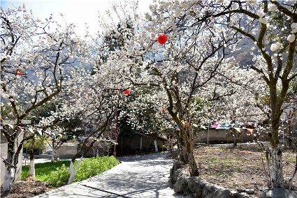 陽(yáng)春三月,瀘定陽(yáng)光明媚,到處生機(jī)盎然。大渡河畔的杵坭、田壩等地櫻桃花在田間競(jìng)相綻放,一團(tuán)團(tuán),一簇簇,一朵朵潔白的花兒緊緊簇?fù)碇?,綴滿枝頭。一陣陣微風(fēng)吹來(lái),櫻桃花隨著枝條在風(fēng)中輕盈地?fù)u曳。
