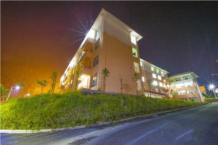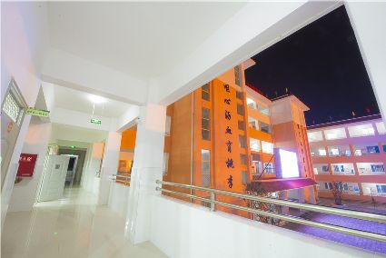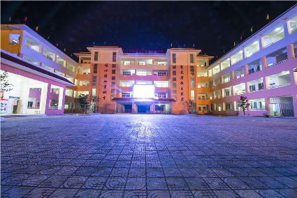 走進(jìn)暮色中,華燈初上,夜幕下的寄宿制學(xué)校更加美麗。具有幾何構(gòu)成美感的教學(xué)樓鐫刻著寒來暑往生琴書,嘔心瀝血育桃李。