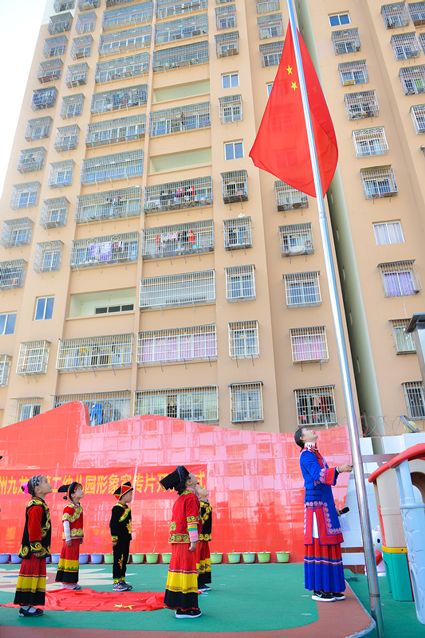 “六一”前夕,我肩挎相機(jī)走進(jìn)了熱鬧非凡的九龍縣二幼,他們正在舉行“我們在一起”文藝活動?;顒右婚_始,幾個四五歲的小小升旗手,身著民族服裝在老師的口令下莊重地走上旗臺,在激昂的國歌聲中,國旗在他們手中冉冉升起,全場行注目禮。這場景令我感動不已,國家強(qiáng)盛,人民安康,孩子們在溫暖的陽光下茁壯成長。