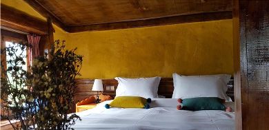 而在墨石公園山下中古村的墨石林卡,也是一片民宿群。小樓外觀依然匠心獨(dú)運(yùn),內(nèi)部同樣干凈整潔。