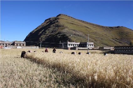 國慶期間,在稻城縣傍河鄉(xiāng)和省母鄉(xiāng),沉甸甸的青稞穗隨風(fēng)起伏、頻頻頷首,把喜悅之情傳給這塊土地的主人。