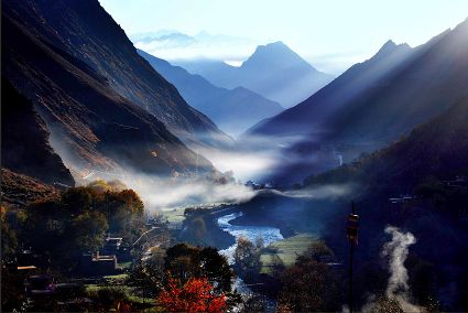 這里有圣潔的雪山,純凈的海子,天然的溫泉,美麗的藏寨,還有一到秋季那漫山遍野的火紅秋葉。