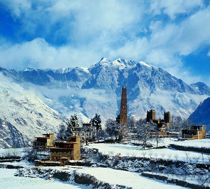 白雪皚皚,窗明幾凈,陽光從高山傾瀉而出。丹巴正沐浴著冬日的陽光,一幢幢外形美觀,風格統(tǒng)一的寨房依著起伏的山勢迤儷而建,高高低低,錯落有致,與周圍清澈的溪流,皚皚的雪峰,構(gòu)成一幅田園牧歌式的優(yōu)美的鄉(xiāng)村畫卷。