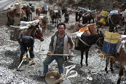 王玉海這次和同伴時為甘孜州白玉縣電網建設幫運石材和鋼材。他們全部都是來自雅安市石棉縣,全隊共有16人,均是同鄉(xiāng),約擁有100頭騾子隊。他們從3月初接到活后,租用大貨車把騾子隊運到白玉縣,接著投入工程白玉縣因為交通阻塞,現(xiàn)在還經常陷入停電的困境。