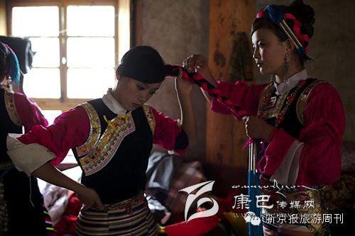 藏戲服裝鮮艷,最好的是女人頭上的花環(huán),春天的姹紫嫣紅都盛放在她的頭上,春天真的來了。長調(diào)悠揚(yáng),回蕩在河谷上空。年輕的巴塘人說,有些聽不懂了,但是圍坐的老人們都認(rèn)真觀摩,跟著情節(jié)唏噓或者含笑。附近寺廟里的小喇嘛也來了,圍著小伙伴的摩托車笑笑鬧鬧。