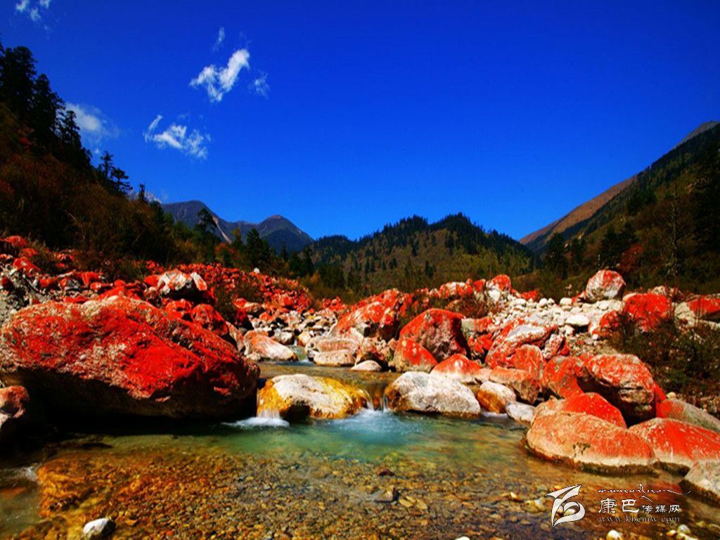 看來要想出現(xiàn)大規(guī)模的紅石灘景觀,除了溫度、濕度、光照等條件外,還需要以下條件:一是要有原生的石頭;二是要有大量的這種石頭;三是給這些石頭一個(gè)巨大的舞臺(tái),讓其亮相。當(dāng)這些條件都具備了,紅石灘就出現(xiàn)了。這種條件怎樣才能夠出現(xiàn)呢?我想到了“泥石流”。