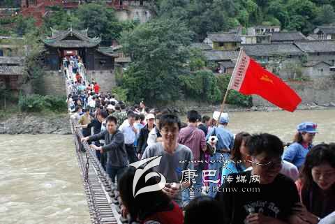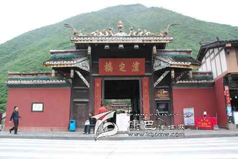 瀘定橋始建于清康熙44年 (1705年),次年五月竣工,康熙御筆題名“瀘定橋”。橋身共由13根鐵鏈組成,其中底鏈九根,扶手四根。橋東西兩端各有橋臺(tái)一座,西端觀音閣下有康熙題寫(xiě)之《瀘定橋》石碑,橋東有《御制瀘定橋碑記》,瀘定橋是大渡河上第一座穩(wěn)固的大鐵索橋。1935年中國(guó)工農(nóng)紅軍晝夜行軍240里,英勇飛奪瀘定橋,打開(kāi)了北上抗日的通道,“十三根鐵鏈托起了一個(gè)共和國(guó)”,毛澤東同志為此寫(xiě)下了“大渡橋橫鐵索寒”的壯麗詩(shī)句,瀘定橋自此名揚(yáng)四海,成為中國(guó)紅色第一橋。為紀(jì)念紅軍飛奪瀘定橋這一壯舉和奇跡,于1985年在沙壩建立了“紅軍飛奪瀘定橋紀(jì)念館”和紀(jì)念碑。紅軍飛奪瀘定橋紀(jì)念碑由鄧小平同志題寫(xiě)碑名,聶榮臻元帥題寫(xiě)碑文。紅軍飛奪瀘定橋紀(jì)念館收集了紅軍飛奪瀘定橋時(shí)用過(guò)的門(mén)板、槍、炮、紅軍的旗幟、文件箱、信件證明、標(biāo)語(yǔ)、戰(zhàn)報(bào)、手雷、馬刀等珍貴文物110余件以及177幅歷史照片。瀘定橋是全國(guó)首批重點(diǎn)文物保護(hù)單位,是國(guó)家重點(diǎn)培育的 “紅色旅游區(qū)”、重點(diǎn)組織規(guī)劃的 “紅色旅游精品線路”和重點(diǎn)建設(shè)的 “紅色旅游經(jīng)典景區(qū)”。