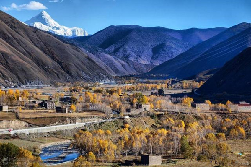 新都橋又稱(chēng)東俄羅,位于318國(guó)道川藏南北線的分叉路口,號(hào)稱(chēng)“攝影家的天堂“。在這可以拍攝到無(wú)垠的草甸,曲折的溪流,金黃的秋葉,山坡上大片在覓食的牛羊,散落著的藏族村寨。隨便一按快門(mén)都能得出一張絕美的風(fēng)景照。