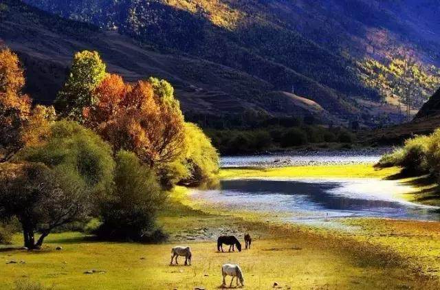 神奇的光線,無(wú)垠的草原,彎彎的小溪,金黃的柏楊,山巒連綿起伏,藏寨散落其間,牛羊安詳?shù)爻圆荨@就是新都橋,令人神往的"光與影的世界"、"攝影家的天堂"。