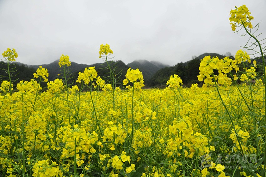 春天剛起頭是油菜花開得最繁的時(shí)節(jié),金黃色的油菜花大大咧咧地?cái)D滿了山坡。她的美麗,不必華美的詞藻,簡簡單單地鋪在山野上,倒更像是頂頭的白云一般,天真無邪。油菜花漫漫地在田間野里站成一道道風(fēng)景,山腳山腰,都是一幅極美極佳的畫。猜猜這是哪里?原來,這里是川西高原上的瀘定城,一個(gè)因?yàn)椤帮w奪瀘定橋”而著名的城市,一個(gè)紅色旅游、英雄的故鄉(xiāng)。