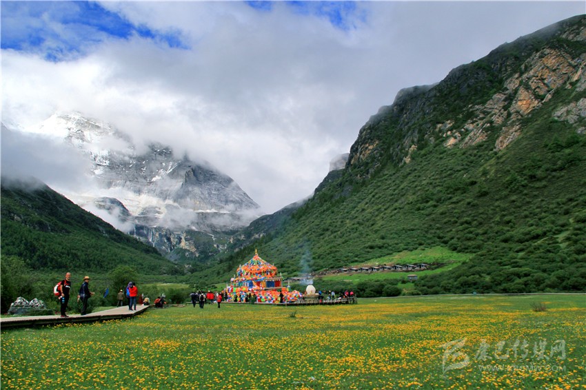 位于大蓋鄉(xiāng)境內(nèi),距新龍縣城90公里,海拔5992米,是觀光、探險(xiǎn)游的好去處??ㄍ呗迦丈巾斀K年積雪,冰川晶瑩,角峰逶迤起伏,氣勢(shì)磅礴,雄偉壯麗,是新龍縣著名的五大神山之一,深受佛教信徒崇拜。相傳,卡瓦洛日山神是苯教十三大神中的財(cái)神“雍宗道杰”,為福佑新龍百姓,特來(lái)此坐鎮(zhèn)。故卡瓦洛日山口,被稱為“孜雍瓊戈”,意為“財(cái)富之門(mén)”。據(jù)說(shuō)朝拜此山后,會(huì)財(cái)運(yùn)亨通、福樂(lè)綿綿。