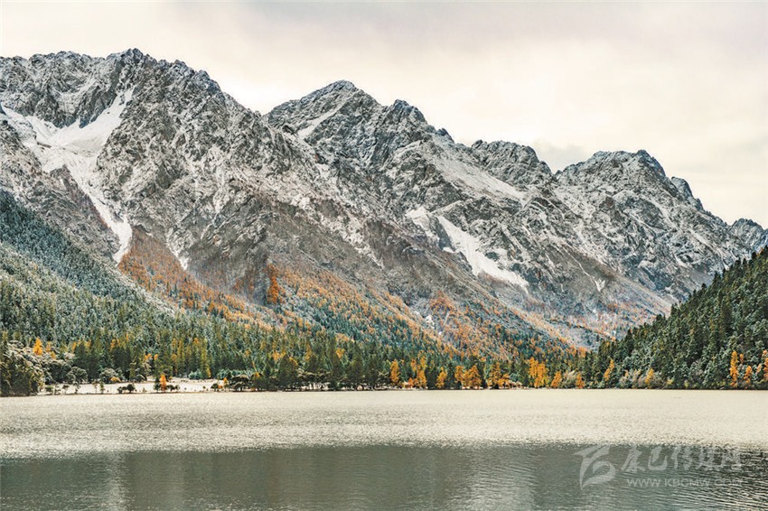 伍須海的色彩,四季都會(huì)變化,秋天最為精彩,滿湖的深綠,青黛的暗針葉林,金黃色的紅杉,火紅的槭樹,褐色的高山櫟,以及點(diǎn)綴于其間的沙棘果實(shí),都五彩繽紛地點(diǎn)染著這張“畫布”。