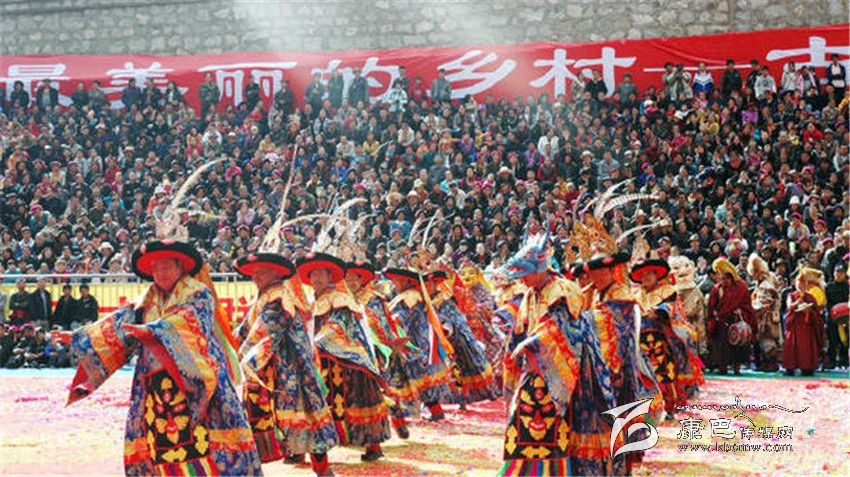 十七世紀(jì)時,丹巴巴底大坪村阿洛、益西降稱等喇嘛去西藏學(xué)經(jīng),求學(xué)期間,征行九世班禪同意在日喀則扎什倫布寺學(xué)習(xí)藏戲,學(xué)了《呷拉翁布》(另名《卓瓦桑姆》)和《甲扎共龔》(譯為《文成公主》)二劇的唱腔、鼓鈸奏法、表演技巧,帶回巴底黃金寺,挑選寺中30余名僧徒成立黃金寺藏戲團(tuán)。此后,每年都在規(guī)定時間演出。丹巴中路藏戲,是中路寺廟喇嘛去西藏學(xué)經(jīng)時帶回的。