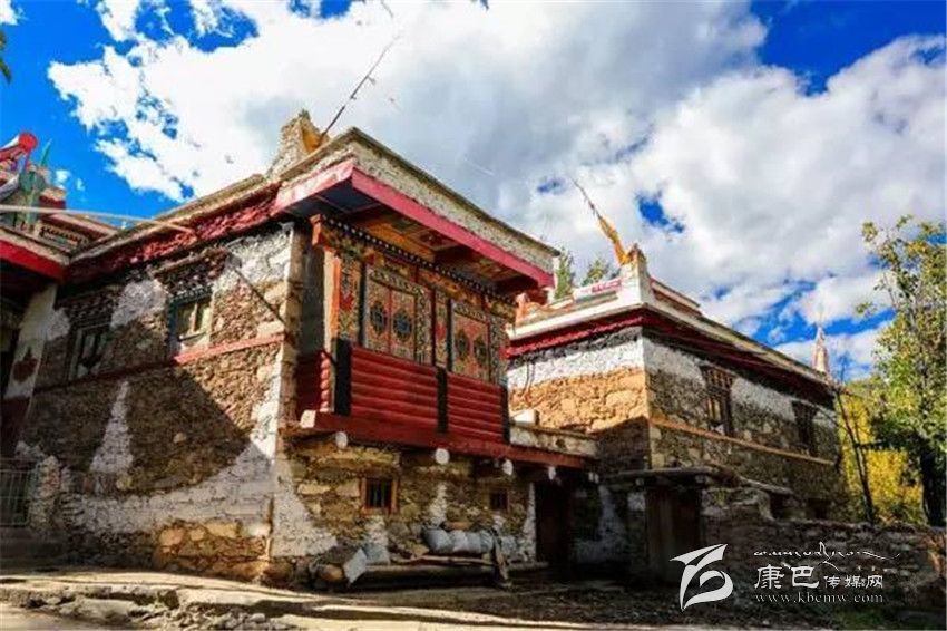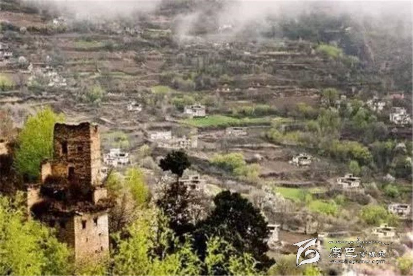 遠(yuǎn)遠(yuǎn)看去,充滿靈氣的山谷中,翡翠般的青草綠樹之中,是那沉甸甸的田地和隱在密林深處的寨房,伴著時有時無的潺潺溪流,一幅富有動感的絕妙山寨畫卷隨之展示在你的眼前。山寨依山面水,周圍綠樹掩映,藏寨從大金河谷層層疊疊向上攀沿,錯落有致的散布在山坡上,一直延伸到卡帕瑪群峰峰的腳下,非常的漂亮。
