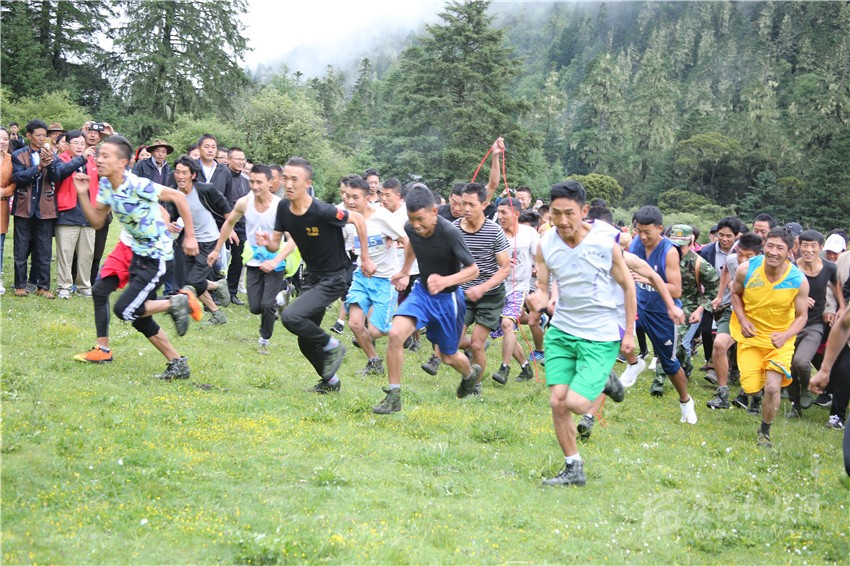 徒步穿越邀請(qǐng)賽是九龍縣委、縣政府主辦的2018年群眾文藝匯演暨甘孜州山地旅游節(jié)之圣湖祈福·第三屆伍須海游海節(jié)活動(dòng)的主要內(nèi)容之一。140多名參賽選手和幾百名旅游愛好者一早來(lái)到伍須海邊,置身于云霧繚繞的山巒之間,共同見證賽事啟幕。在宣布比賽規(guī)則后,隨著裁判一聲哨響,參賽選手從郁郁蔥蔥、芳華吐露的伍須海岸的上草壩奔向山峰,經(jīng)過(guò)伍須海、海臺(tái)景點(diǎn),最終到達(dá)風(fēng)景名勝日魯庫(kù)。在11公里的山路中,參賽選手將爬越4200多米的高峰,穿越古老蔥郁的原始森林,感受高山杜鵑和高原野花的麗姿,與窸窣的鳥鳴為伴,在競(jìng)賽的同時(shí),樂享藏彝走廊的無(wú)盡魅力。