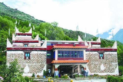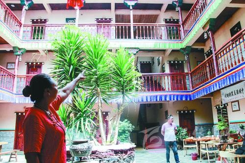記者在“安卡兒民族莊園”看到,每天游客絡繹不絕,游客們不肯錯過的是這里的鄉(xiāng)愁。眼前的“安卡兒民族莊園”是一座藏式三層小樓,以嘉絨民居為主格調(diào)。從外觀看,這棟三層小樓與村里其他農(nóng)家小院沒有多少差異,但仔細端詳,其所有窗戶大小、高低不一,透出與眾不同的設(shè)計風格。走進院內(nèi),這座藏式小樓的走廊外側(cè)裝著木欄桿,欄桿下面掛著藍綠相間的布條,以及大院中央郁郁蒼蒼的盆景,讓人美不勝收。