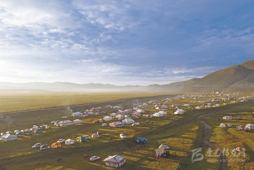 金馬草原以寬、平而著稱,藍(lán)天白云和雪山草地融為一體,明媚陽光和朵朵帳房風(fēng)景如畫。傳說金馬草原腳下有一匹金馬,又傳說在這里曾發(fā)現(xiàn)過一塊馬頭形金塊,后人為祈禱福祉而得名,碧草連天,駿馬奔騰,千里沃野,牛羊成群。景區(qū)主要以草原風(fēng)光和游牧部落風(fēng)情為主,加上宗教文化的融入,使金馬草原旅游區(qū)成為集觀光、娛樂、探秘、朝拜、餐飲等于一體的景區(qū),游客不僅可以享受淳厚濃郁的民族風(fēng)情,還可以體驗獨具特色的游牧部落文化。