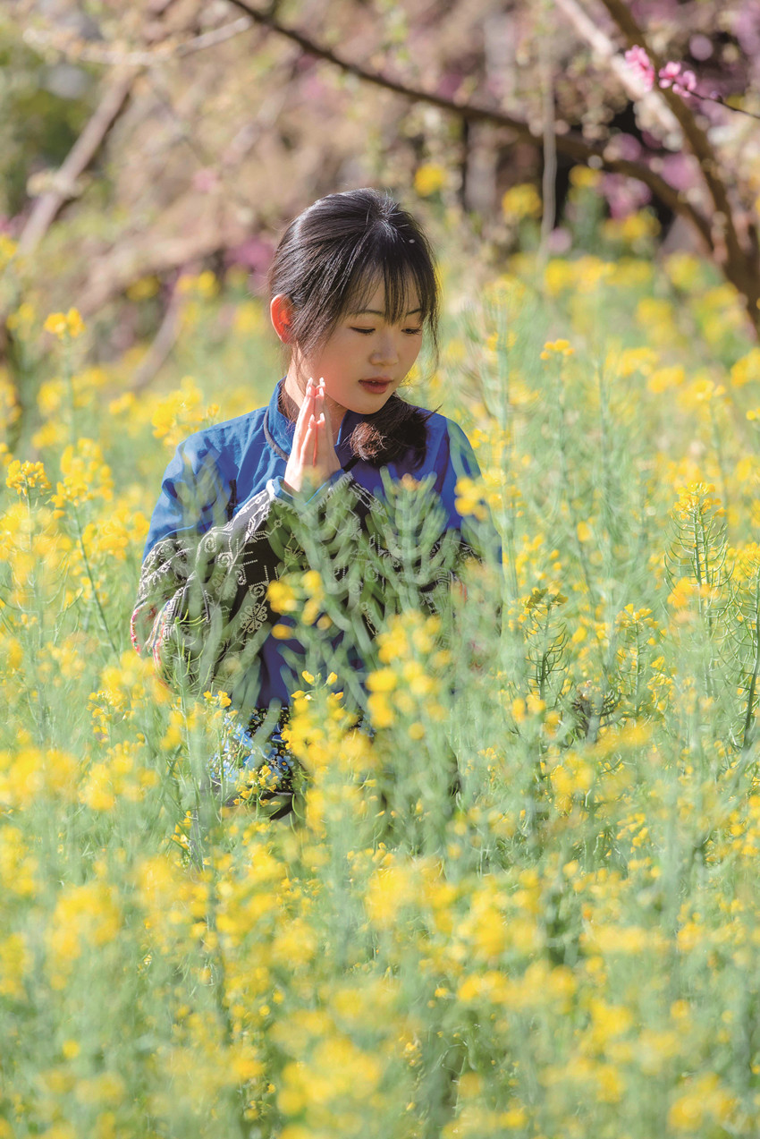 人與花相映成趣