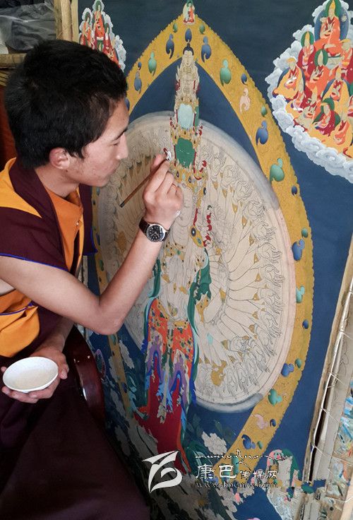 11月11日,一位畫(huà)師在創(chuàng)作郎卡杰唐卡。