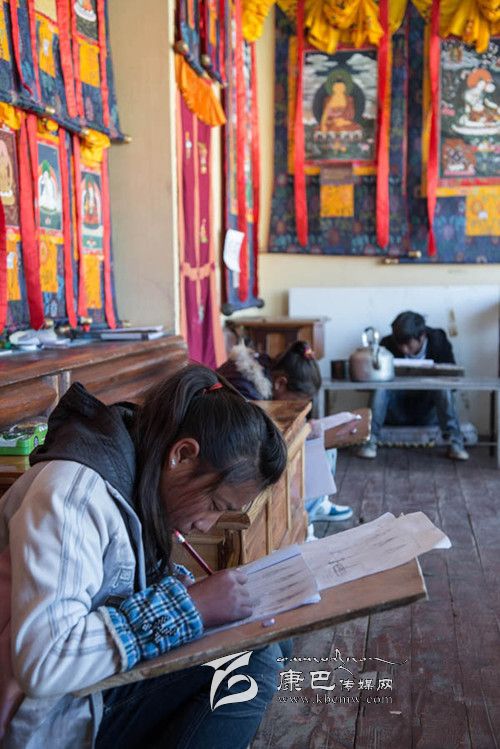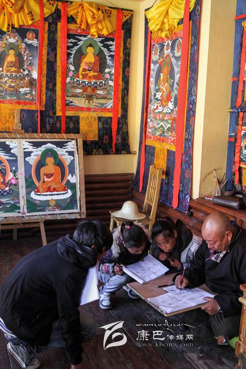 11月11日,幾個(gè)孩子在學(xué)習(xí)唐卡畫(huà)基本功。