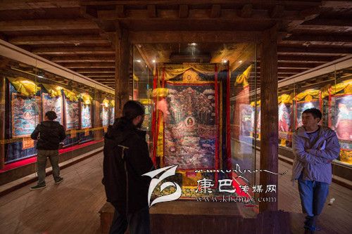 11月11日,幾位游客在爐霍縣博物館里觀(guān)賞郎卡杰唐卡精品。