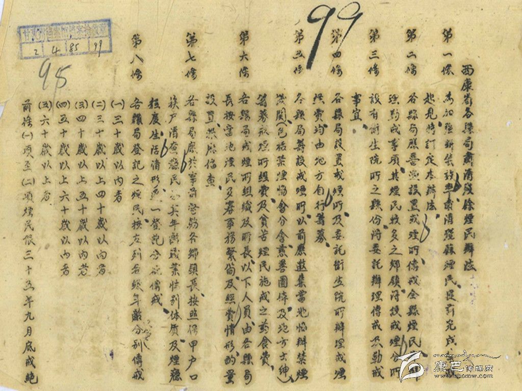 這一組檔案是在民國(guó)年間不同年代的禁煙令,有的出自于四川省、西康省,有的出于縣政府;有的以布告形式,有的以條告的形式,內(nèi)容不拘長(zhǎng)短,都在強(qiáng)調(diào)禁煙。