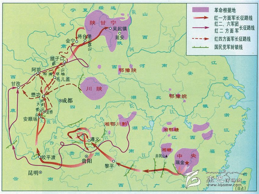 1934年10月,紅一方面軍從江西中央革命根據(jù)地出發(fā),1935年5月,紅一方面軍由雅安石棉沿大渡河進入甘孜州地界,這之前,他們突破了難以計數(shù)的圍追堵截,皎平渡巧渡金沙江,安順場強渡大渡河,跳出了包圍圈,為抗日,5月29日,紅軍拿下天險瀘定橋后,奇襲蘆山、寶興,翻越夾金山,進入阿壩州地界。