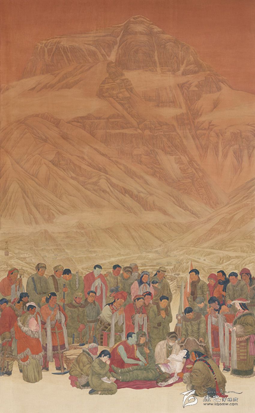 劉忠俊在繼承藏族傳統文化和唐卡審美的基礎上,歷時一年半,創(chuàng)作了工筆畫《川藏公路》。該作品以史詩般恢宏的氣度,謳歌了當年18軍為維護祖國統一、建設美好藏區(qū)、修筑川藏公路敢于犧牲和勇于奉獻的精神。作品通過靜穆質樸的美,彰顯出中華民族自強不息、百折不撓的精神。