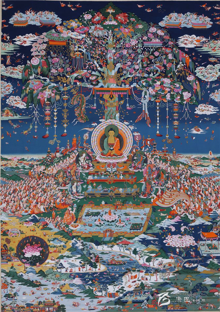 郎卡杰唐卡畫派傳統(tǒng)繪畫藝術(shù)風格不僅主導(dǎo)著藏區(qū)東部的藏族美術(shù)文化,而且對整個藏族美術(shù)的傳承和發(fā)展也有較大影響,特別是對進一步研究藏族歷史起著不可估量的巨大作用。