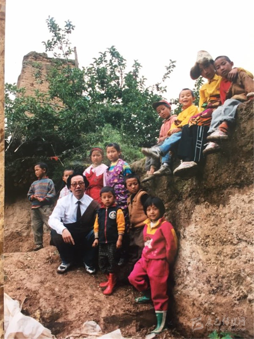 在基層采風(fēng)時,阿金與兒童在一起。