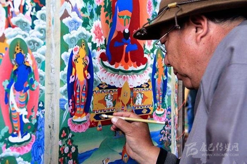 郎卡杰,出生地爐霍縣新都鎮(zhèn)朱巴村,是舉世聞名的唐卡畫師。 郎卡杰作品在線條構圖、結構布局、用色格調等各方面,無論是背景配置中意境神秘、形態(tài)自然,線條造型中剛柔相容、柔和流暢,還是施色輕薄中色彩多樣、艷而不俗、沉著細膩、至今不失貴雅,甚至主題圖中的怒相張揚或文相飄逸,均達到寫實與表意、動物與靜物的完美結合。所以,郎卡杰大量的作品里流露著每個畫派的精髓,并且顯得渾然天成,聚示眾彩。更重要的是在此基礎上,要按十分嚴格的度量經(jīng)來作畫。