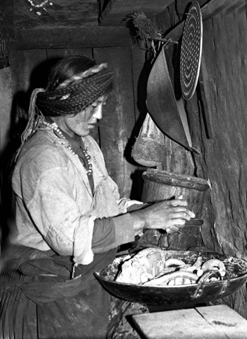 再就是有腌制酸菜的好手—魚通婦女。魚通女,多是“大腳丫頭”,高大壯實(shí),堪稱“女漢子”,且善良賢淑、憨厚能干,里里外外拿得起放得下,看不到一點(diǎn)“窈窕淑女”的影子。所以早年康定地方流行這樣的“禪話”:“大風(fēng)塆的風(fēng),瓦斯溝的蔥,要討婆娘到魚通”。高高山上的魚通女,“任你溜溜的求喲!”。