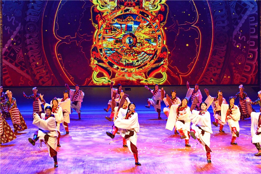 文化是通過千百年來民間創(chuàng)作過濾提升而沉淀的精神產品,內涵的挖掘需要通過藝術的詮釋,以最直接的互動來進行傳播。面對藏民族深邃而又神秘的文化遺產,很多游人感覺只是迷茫、好奇,并不懂藏民族的文化精神。當今世界生態(tài)環(huán)境成為人類最大的難題,如何破解,《亞丁?三怙主》詮釋的智慧、慈悲、勇敢的理念也許會對人類有啟示性。這就是《亞丁?三怙主》大型民族歌舞劇所傳達的信息,也是創(chuàng)作的初衷。